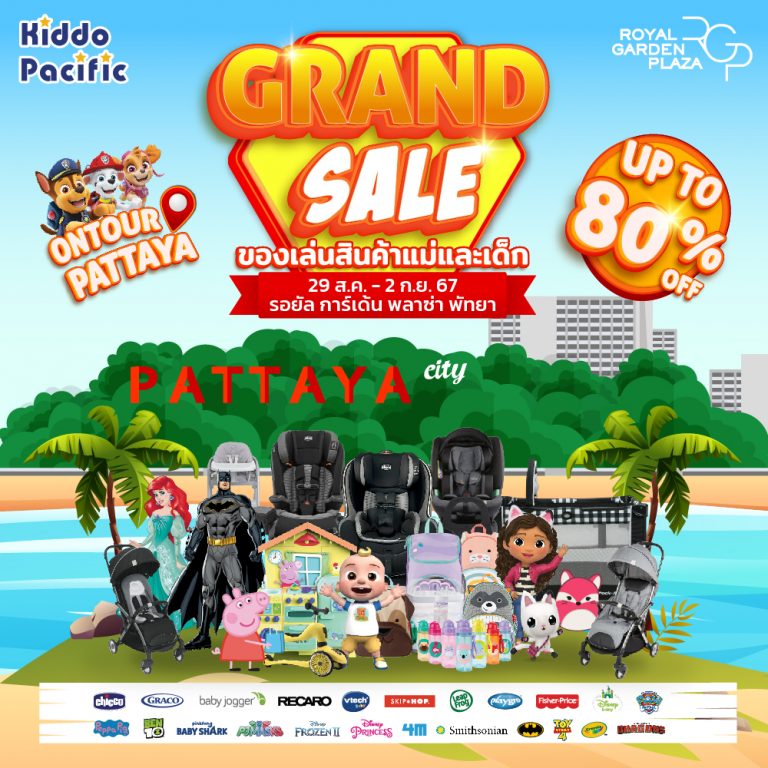 เริ่มแล้ววันนี้ที่รอยัลการ์เดนพลาซ่าพบกับสินค้าแบรนด์ดังมากมาย ลดสูงสุด 80% ลดกระหน่ำสูงสุด 80% พบกับสินค้าคุณภาพแบรนด์ดังมากมาย ตอบโจทย์ทุกความต้องการของลูกน้อย ช้อปเพลิน กับสินค้าหลากหลายแบรนด์ดังกว่า 30 แบรนด์ ในงาน Kiddo Pacific Grand Sale⭐️ รอยัลการ์เดนพลาซ่า พัทยา ชั้น 1🎉 วันที่ 29 สิงหาคม – 2